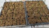 室内で冬越し準備中のハイビスカスの挿し木苗。春の地植えを待つ。