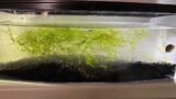 水槽を眺めていると、いつの間にかガラス面にびっしり苔。